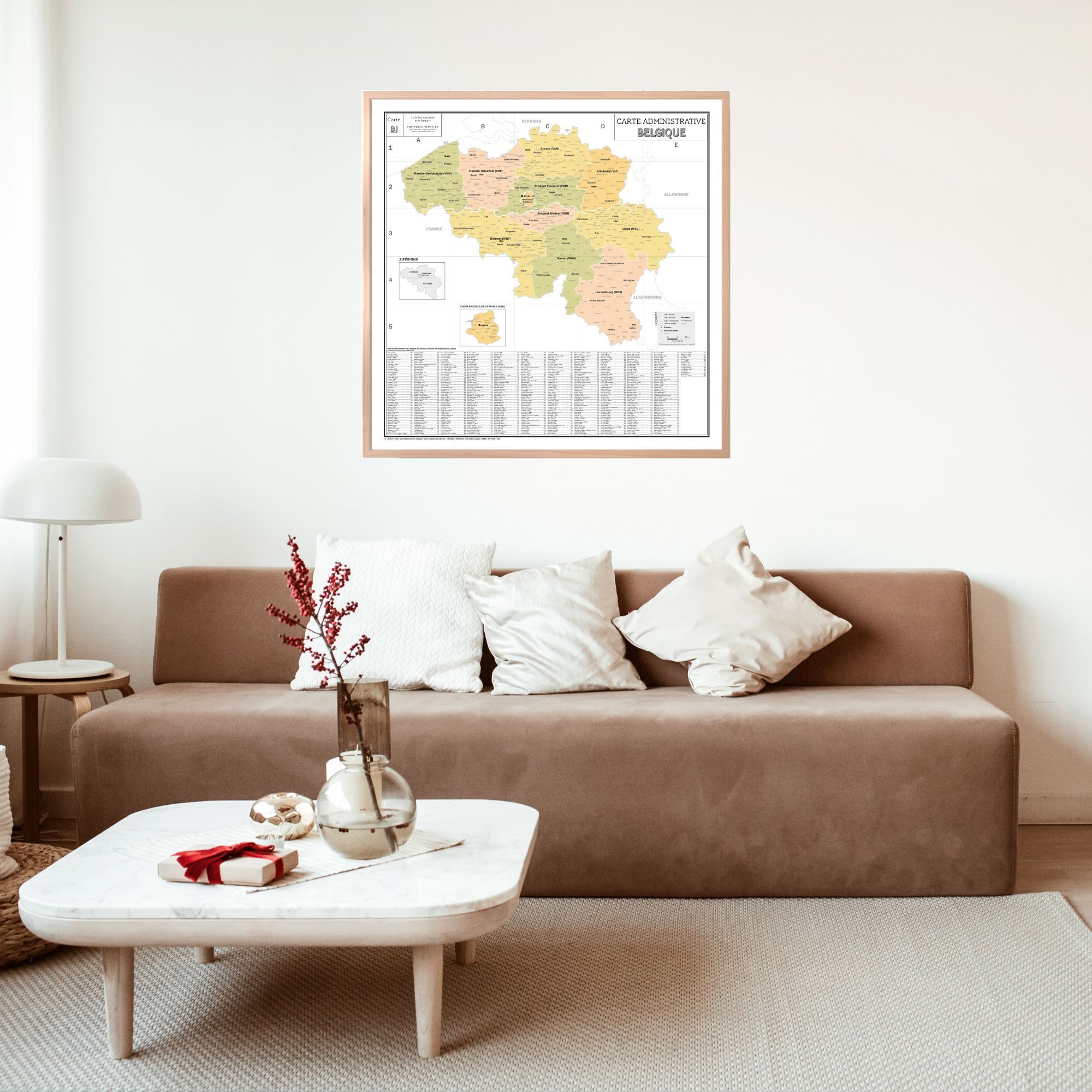 Carte de la Belgique – Plan mural format 100x100cm : design vintage