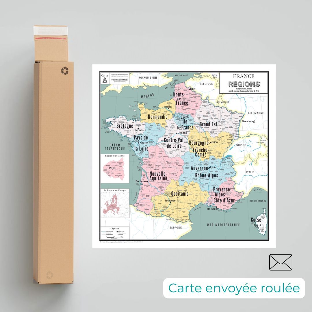 Livraison : Ce poster Carte de France sera livré à votre adresse par transporteur en J+5.