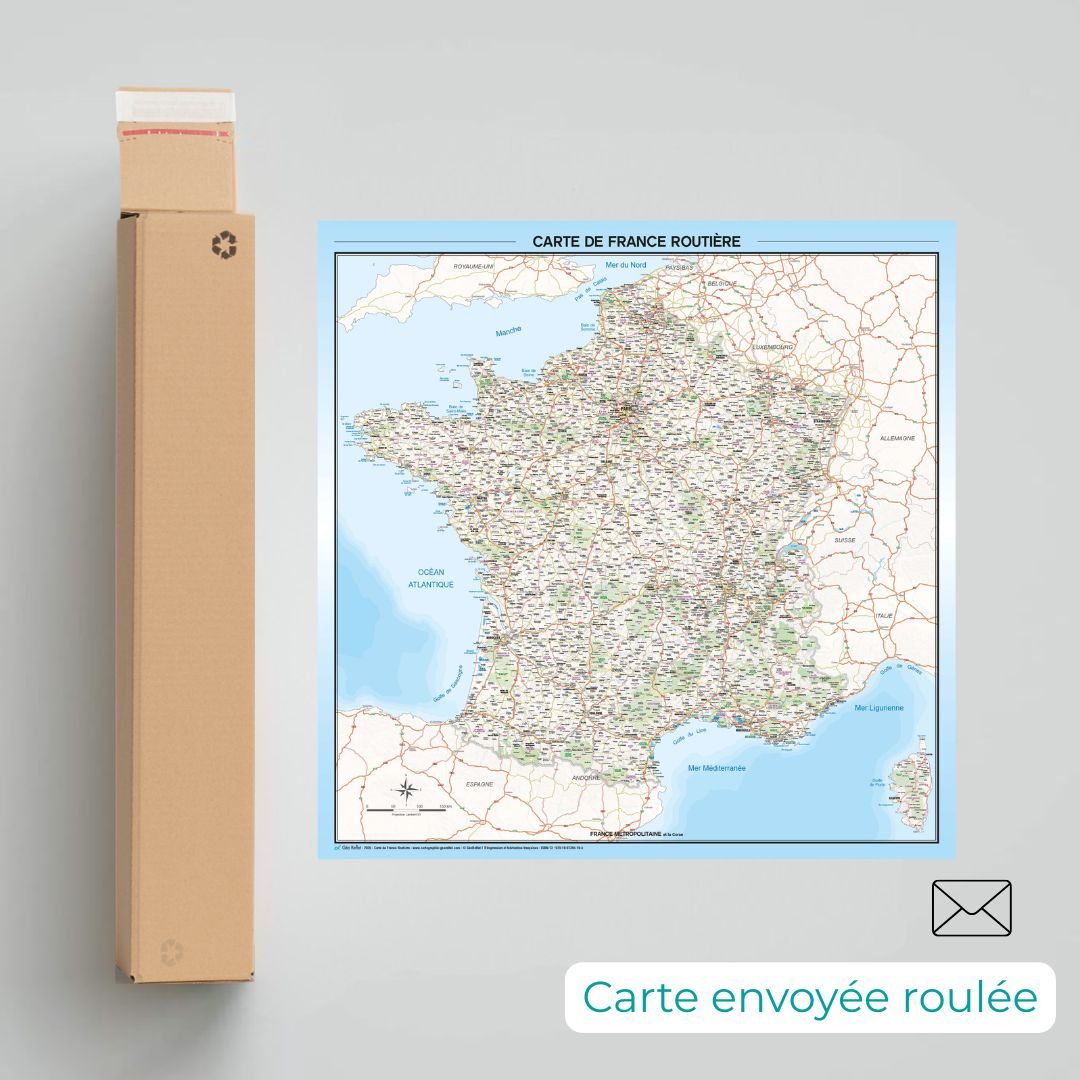 Livraison : Ce poster plastifié de carte de France routière vous sera livré.e à votre adresse par transporteur en J+4.